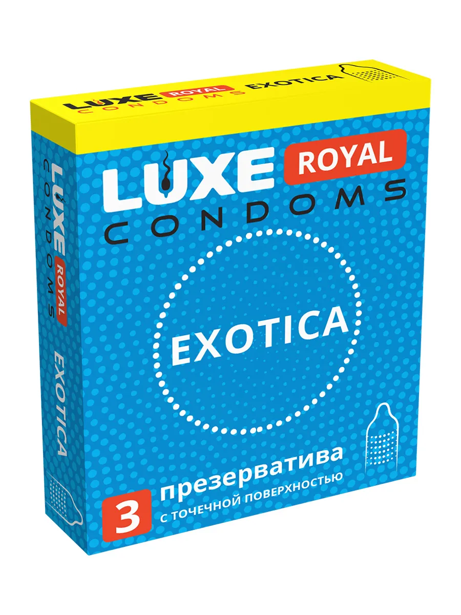 Классические презервативы LUXE Royal Exotica - надежный метод защиты от преждевременной беременности и ЗППП и незаменимый помощник в любовных делах. Три латексных презерватива с накопителем и смазкой в яркой фирменной упаковке. Получить новые ощущения в отношениях и доставить максимальное удовольствие партнерше поможет ребристый рельеф. Наивысшее наслаждение от дополнительной стимуляции чувствительных участков. Силиконовая смазка для качественного и длительного скольжения. Надежность и безопасность использования этих контрацептивов подтверждены тестированием электроникой. Наслаждаться процессом, не беспокоясь о безопасности, легко с презервативами LUXE Royal Exotica Качественный латекс Силиконовая смазка Текстурированный Протестировано электроникой Длина 180 мм Ширина 52 мм Толщина стенок 0,06 мм Количество в упаковке – 3 шт