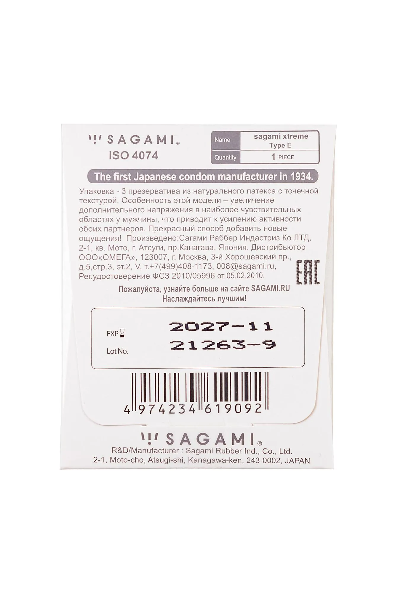 Латексные презервативы Sagami Xtreme Type-E не только надежно защищают, но и ставят точку на скучном сексе и искусственных чувствах. • Их поверхность покрыта сотнями рельефных точек, которые задействуют нервные окончания во время стимуляции и приводят женщин в неописуемый восторг. • Тонкие стенки сохраняют чувствительность пениса на должном уровне. • Анатомическая форма препятствует сползанию презерватива в процессе и делает секс максимально комфортным. Презервативы Sagami Xtreme Type-E — лучшие в своем деле, и точка!