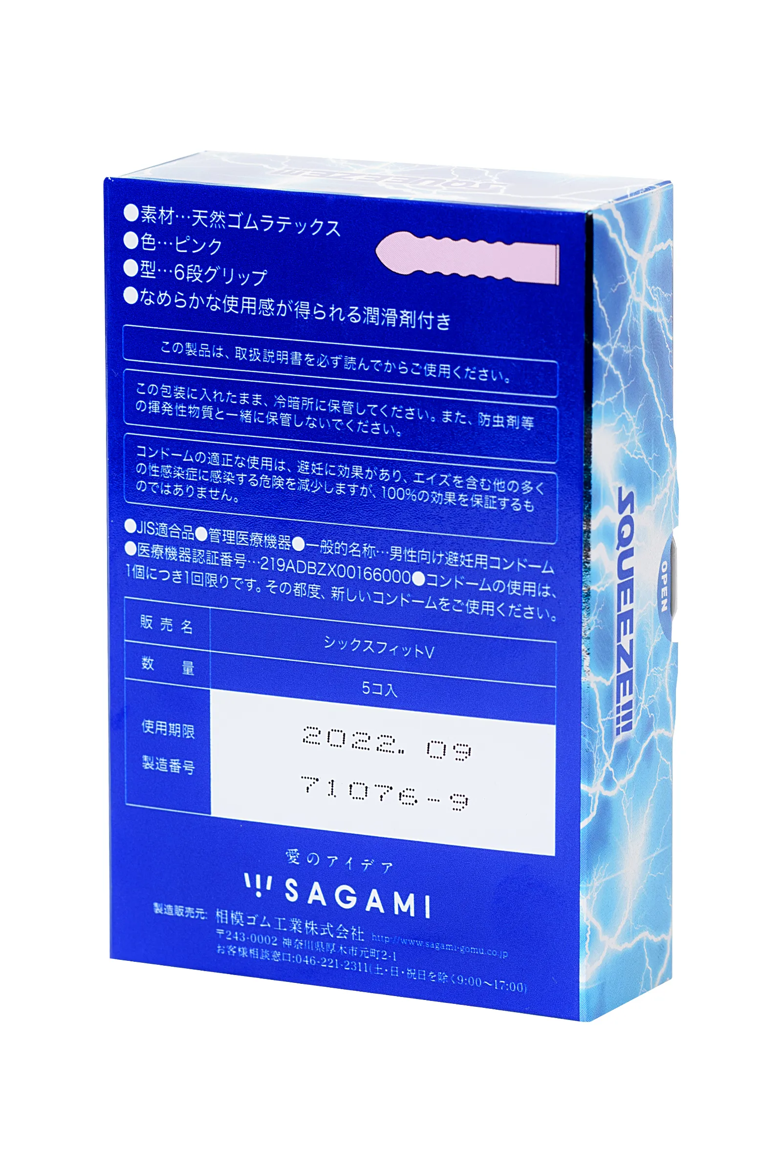 Японские латексные презервативы Sagami Squeeze объявляют войну заурядному сексу. Их волнистая текстура задействует сотни эрогенных точек партнерши, отсутствие накопителя сохраняет максимальную чувствительность головки, а 6 зон сужения обеспечивают плотное прилегание презерватива и предотвращают его соскальзывание даже во время интенсивных секс-марафонов. Силиконовая смазка дарит долгое, комфортное скольжение и нивелирует появление натираний и микротрещин. По расчетам производителя, она в 10 раз эффективнее обычных силиконовых лубрикантов. Латекс высочайшего качества защищает от ЗППП и нежелательной беременности. Sagami Squeeze — когда секс с презервативом не уступает сексу без него.