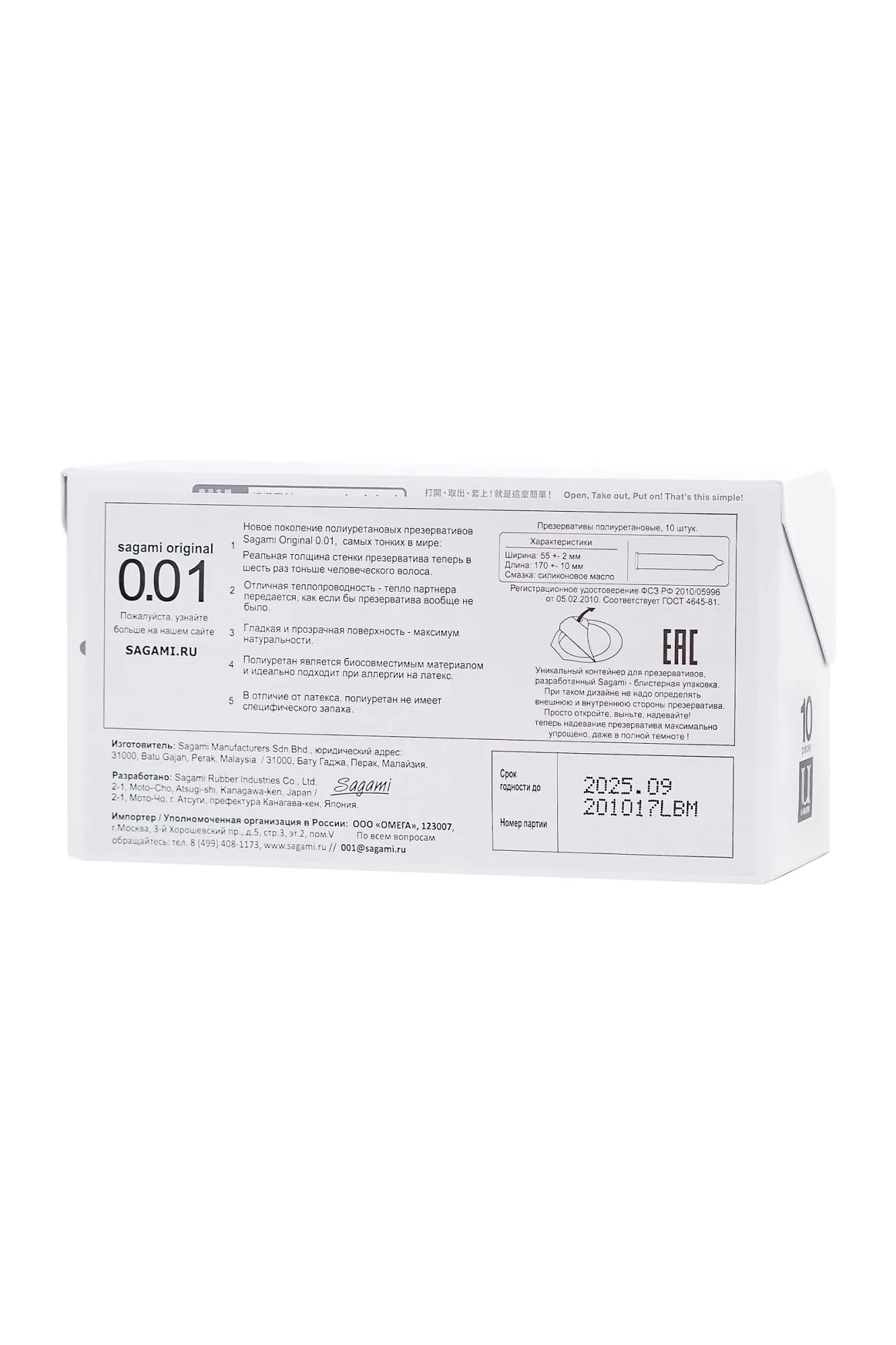 Революционные презервативы Sagami Original 0.01 произвели такой фурор в Японии, что продаются в другие страны в крайне ограниченных количествах. Нет, производителям их не жалко, просто японцы раскупают их так быстро, что на экспорт практически ничего не остается. Чем же они так хороши? Это новое поколение супертонких полиуретановых презервативов. Толщина в 0,01 мм настолько мала, что позволяет партнерам чувствовать только друг друга, а не презерватив. Несмотря на ультратонкие стенки, Sagami Original 0.01 очень прочны и так же надежно защищают, как их более плотные собратья. Они мгновенно принимают температуру тела человека и придают стимуляции совершенную естественность. Не содержат протеинов и химических катализаторов, а значит, полностью гипоаллергенны и подходят даже людям с аллергией на латекс. Полиуретановые презервативы обладают нейтральным ароматом и не раздражают «резиновым» запахом, как латексные. Берите максимум удовольствия от секса вместе с презервативами Sagami Original 0.01.