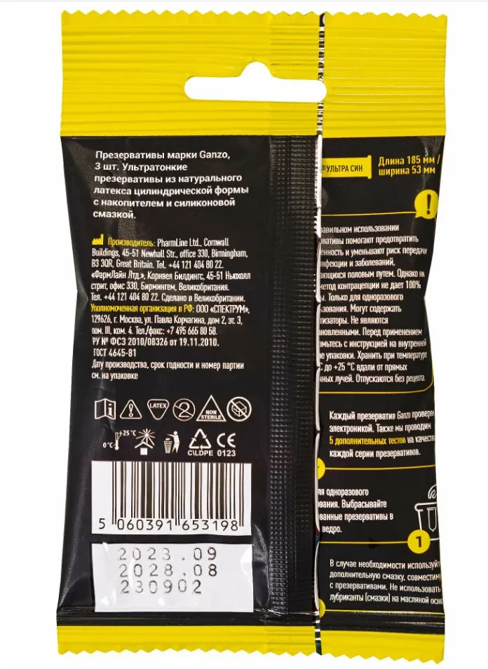 —Презервативы Ультратонкие Ganzo Ultra Thin 3шт. в пакете Black Edition