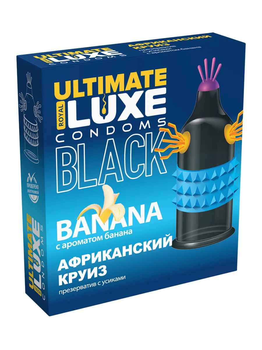 Стимулирующий презерватив из черного латекса с усиками и ароматом банана. Для тех кто любит экспериментировать и ценит яркие и разнообразные ощущения в сексе. В каждой фирменной упаковке с привлекательным дизайном содержится один черный презерватив в смазке из натурального латекса.