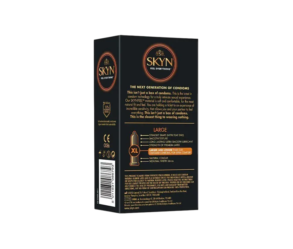 Презервативы Skyn весьма хорошо тянутся. Это неоспоримое преимущество перед полиуретановыми презервативами. Теплопроводность полиизопрена также выше, чем у полиуретана. Это делает презервативы Skyn по-настоящему незаметными для обоих партнёров. При этом они никуда не сползают, не слетают и не передавливают.