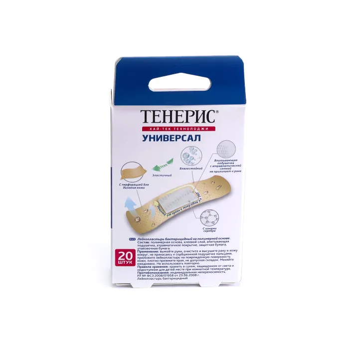 —TENERIS UNIVERSAL Лейкопластырь бактерицидный с ионами серебра, 20 шт