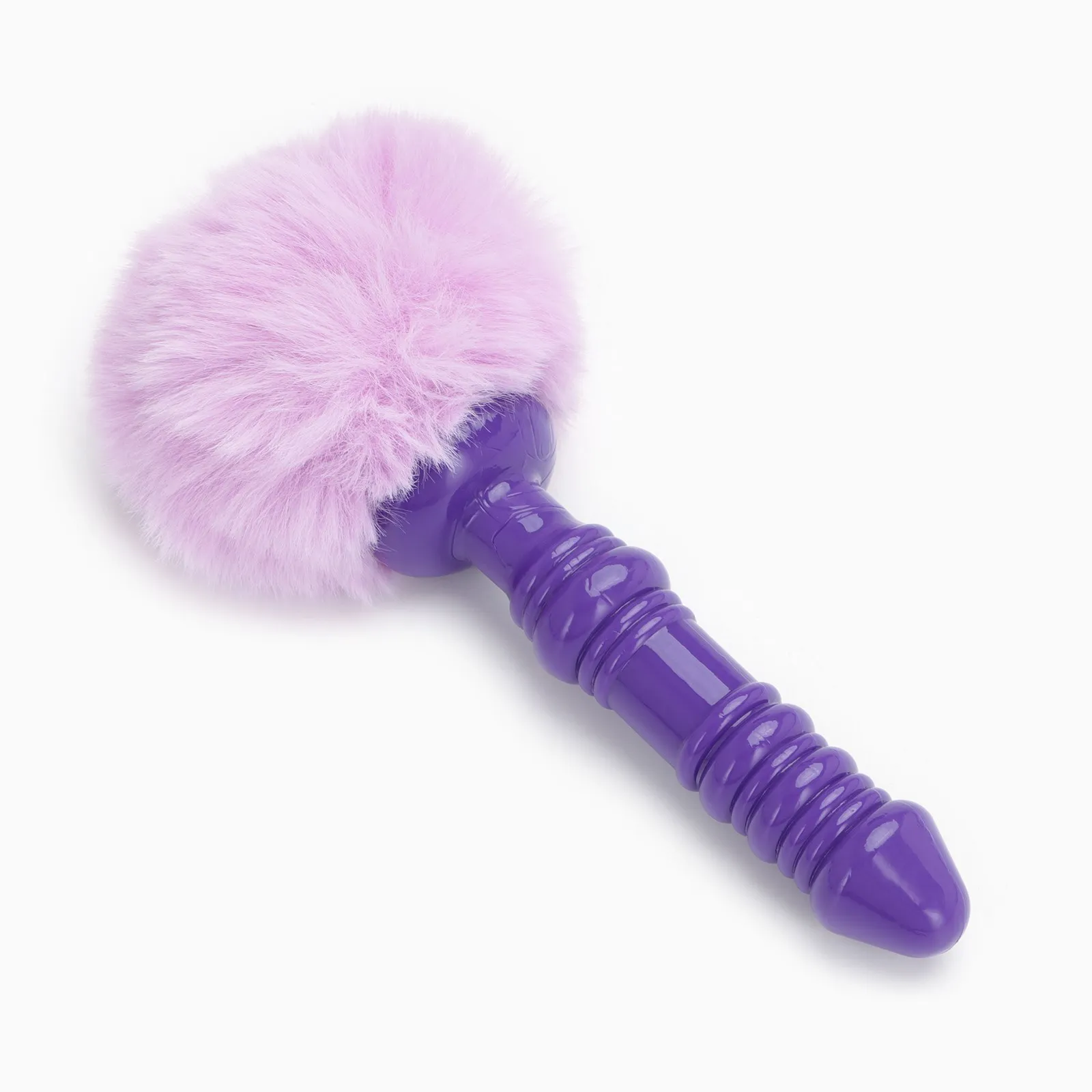 —Анальная пробка с мехом Оки-Чпоки, втулка силикон, 130×26 мм, хвост 65 мм, кольца, сиреневый