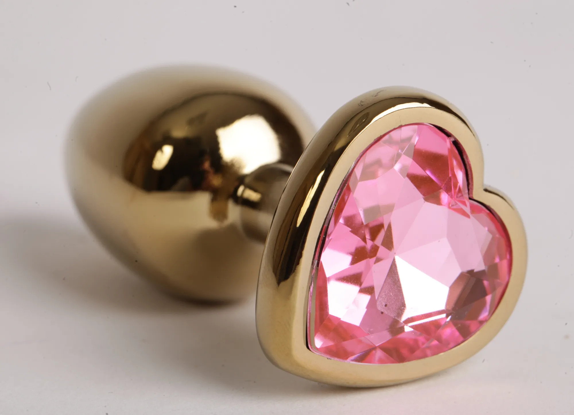 Анальная пробка под золото с ярким кристаллом в форме сердечка внесет разнообразие в вашу интимную жизнь. Обладает сглаженной формой, что позволяет обеспечить легкое введение и комфортное длительное ношение. Снабжена ограничительным основанием для безопасного использования. Характеристики: Общая длина 7,5 см, высота основания 1 см, рабочая длина 6,5 см,наибольший диаметр: 2,8 см., вес 65 гр. Упаковка: индивидуальный тканевый мешочек и коробка.