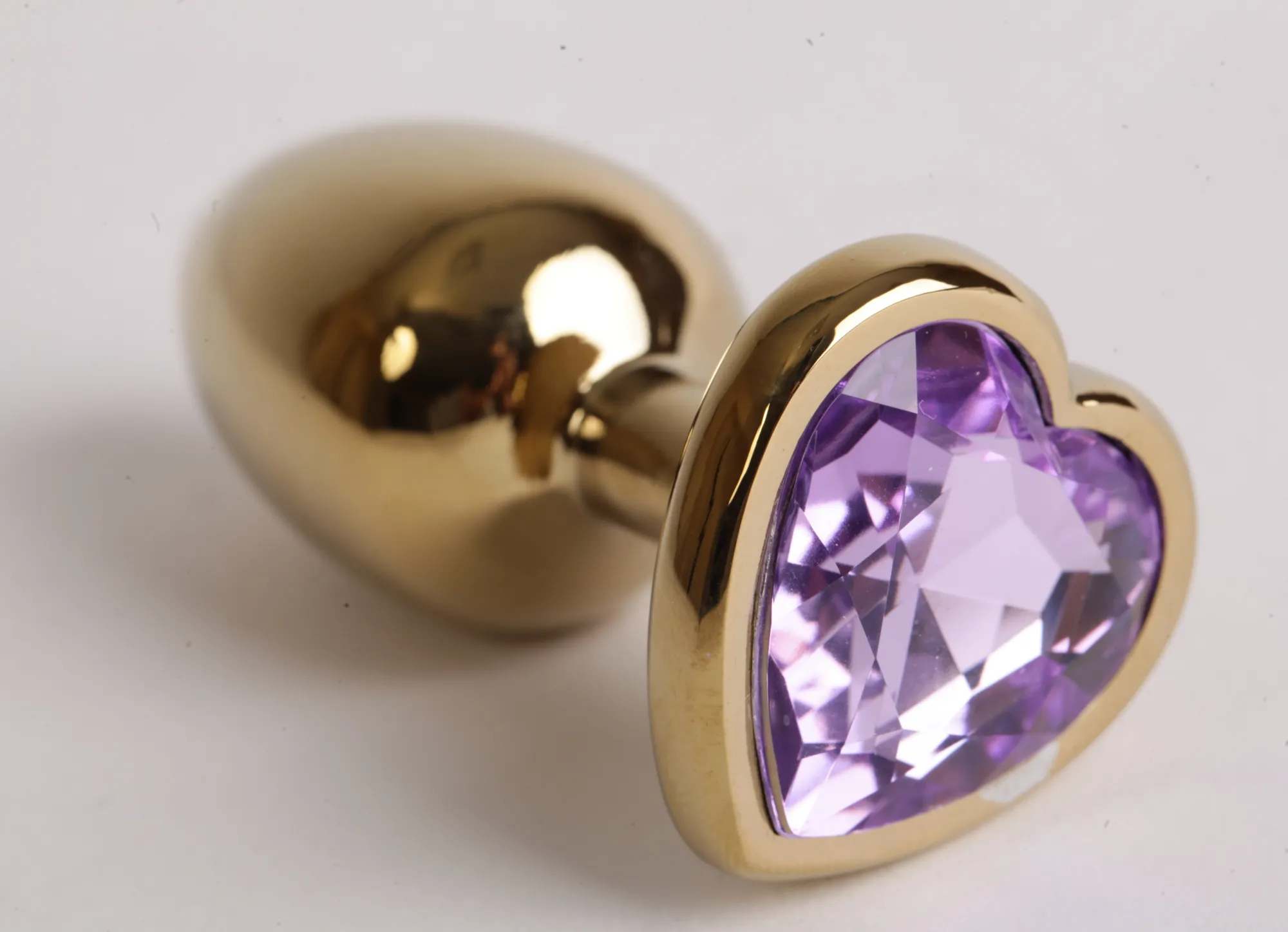 —Анальная пробка золото 7,5х2,8см с сердечком сиреневый страз 47191-MM