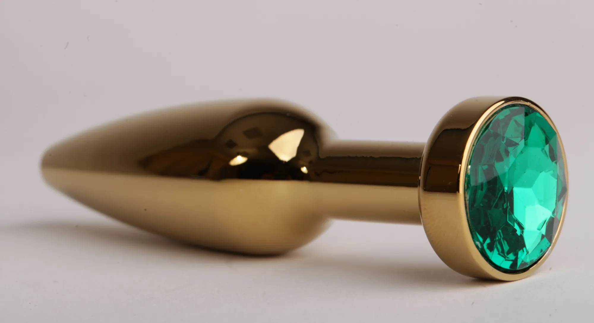 Анальная пробка золото с зеленым стразом 11,2х2,9см 47198-2-MM