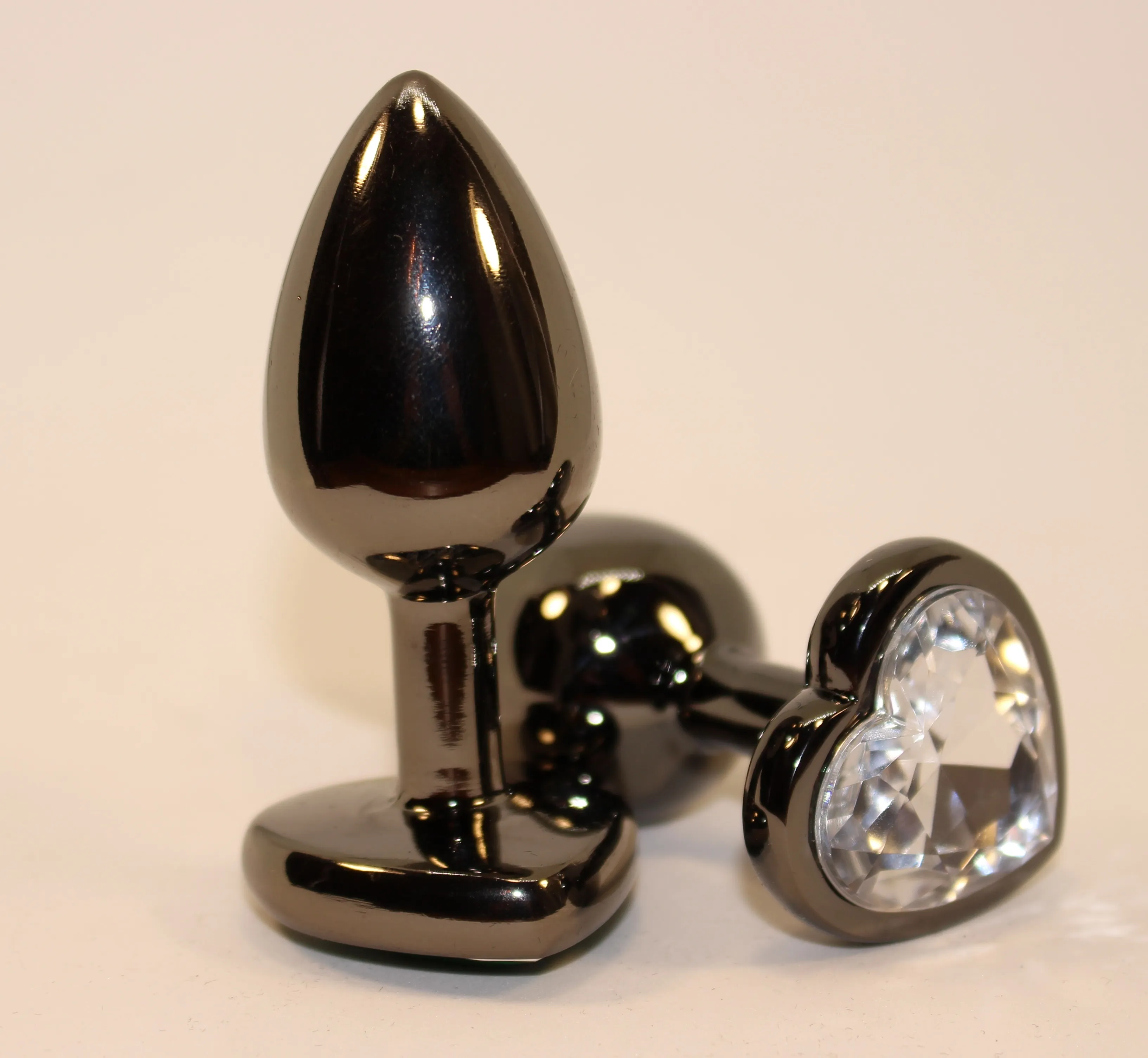 Анальная пробка черного цвета с ярким кристаллом в форме сердечка внесет разнообразие в вашу интимную жизнь. Обладает сглаженной формой, что позволяет обеспечить легкое введение и комфортное длительное ношение. Снабжена ограничительным основанием для безопасного использования. Характеристики: Общая длина 7 см, высота основания 1 см, рабочая длина 6 см,наибольший диаметр- 2,6 см., вес 55 гр. Упаковка: индивидуальный тканевый мешочек и коробка.