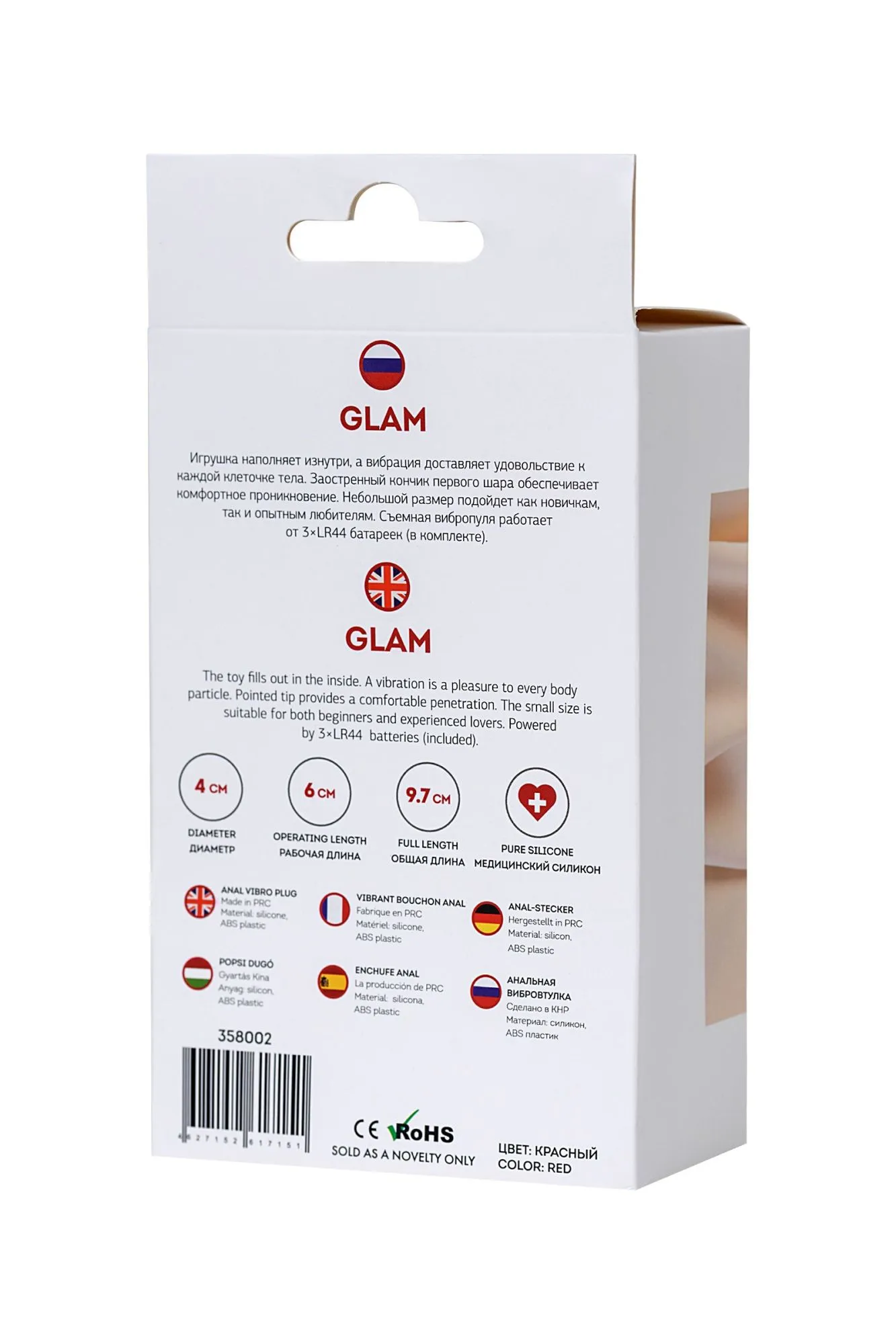 Glam Игрушка наполняет изнутри, а вибрация доставляет удовольствие каждой клеточке тела. Заостренный кончик первого шара обеспечивает комфортное проникновение. Небольшой размер подойдет как новичкам, так и опытным любителям. Съемная вибропуля работает от 3×LR44 батареек (в комплекте).