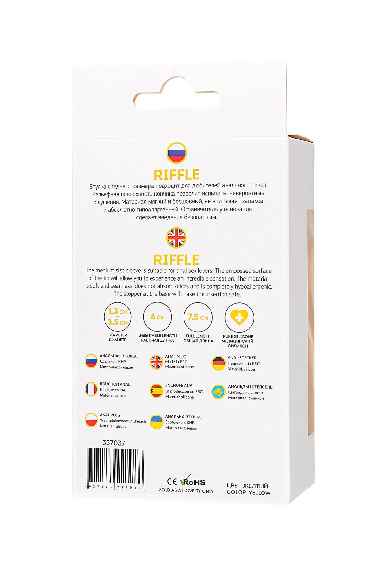 Riffle Яркая втулка маленького размера идеально подойдет для первого опыта. Рельефная поверхность кончика позволит испытать невероятные ощущения. Материал мягкий и бесшовный, не впитывает запахов и абсолютно гипоаллргенный. Ограничитель у основания сделает введение безопасным.