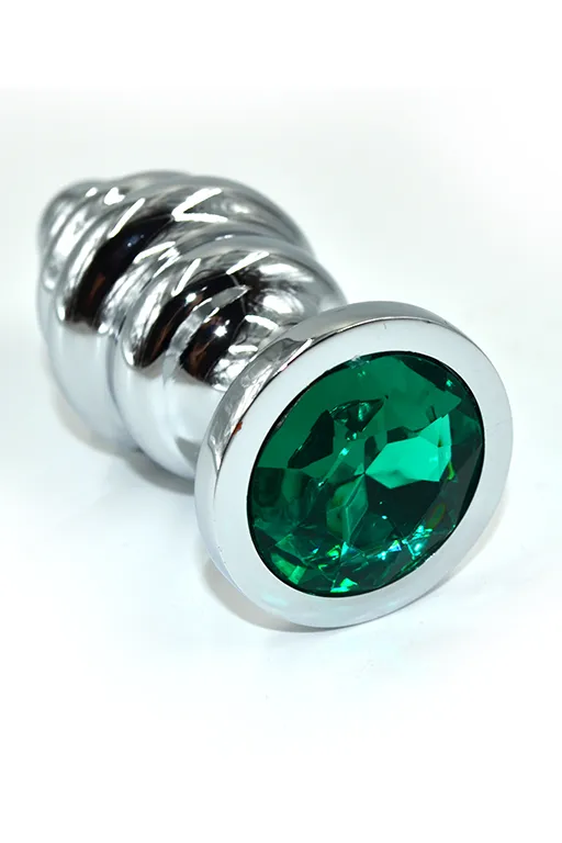Литая анальная пробка имеет конусообразную ребристую форму и гладкую фактуру шлифованного металла. Легкий и прочный алюминиевый сплав гарантирует долговечность и гигиеничность, а также абсолютную безопасность даже при постоянном ношении. Крупный граненый кристалл в основании имеет специальное светоотражающее покрытие дна для усиления блеска и более яркого и красочного вида.