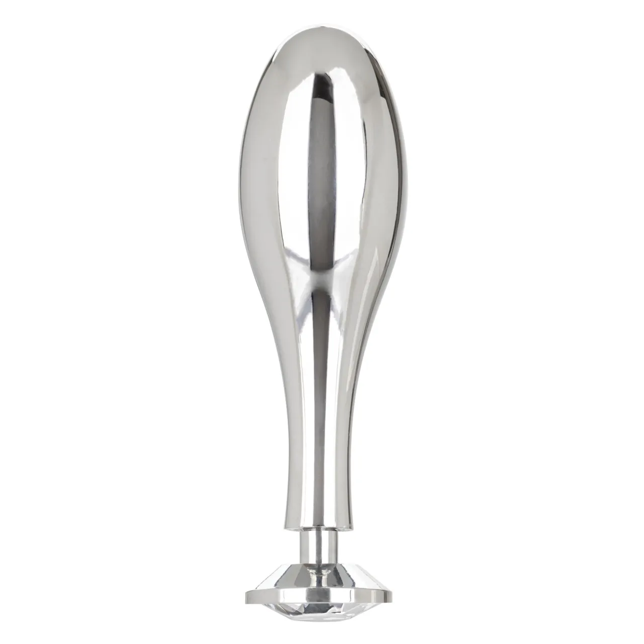 Литая анальная пробка имеет каплевидную форму. Гладкая фактура шлифованного металла создается вручную.