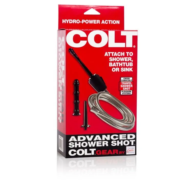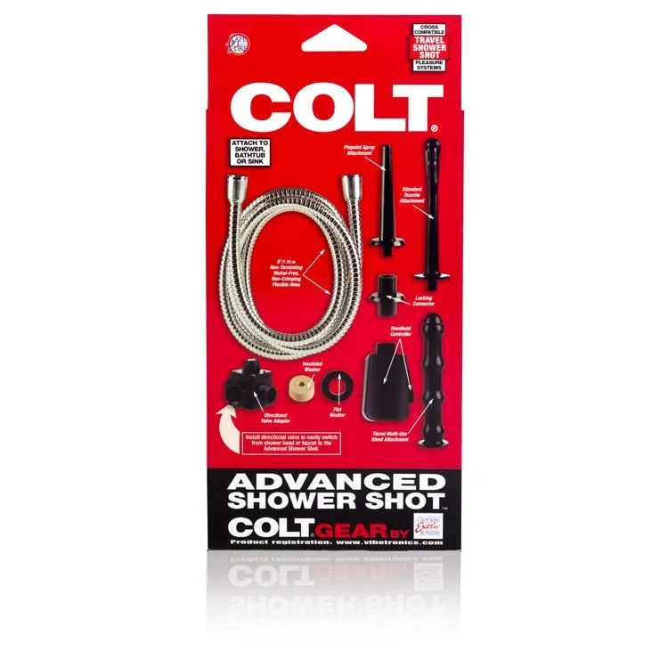 Система анального душа Colt Advanced Shower Shot легко подключается к водопроводу без специальных инструментов, имеет три различные насадки из термопластичной резины (8 х 1 см, 12 х 2 см, 13 х 2 см), шланг и адаптер. Универсальный адаптер с постоянным распределителем позволяет пользователю быстро переключаться между краном и душем. Поможет провести гигиенические процедуры перед интимной близостью.