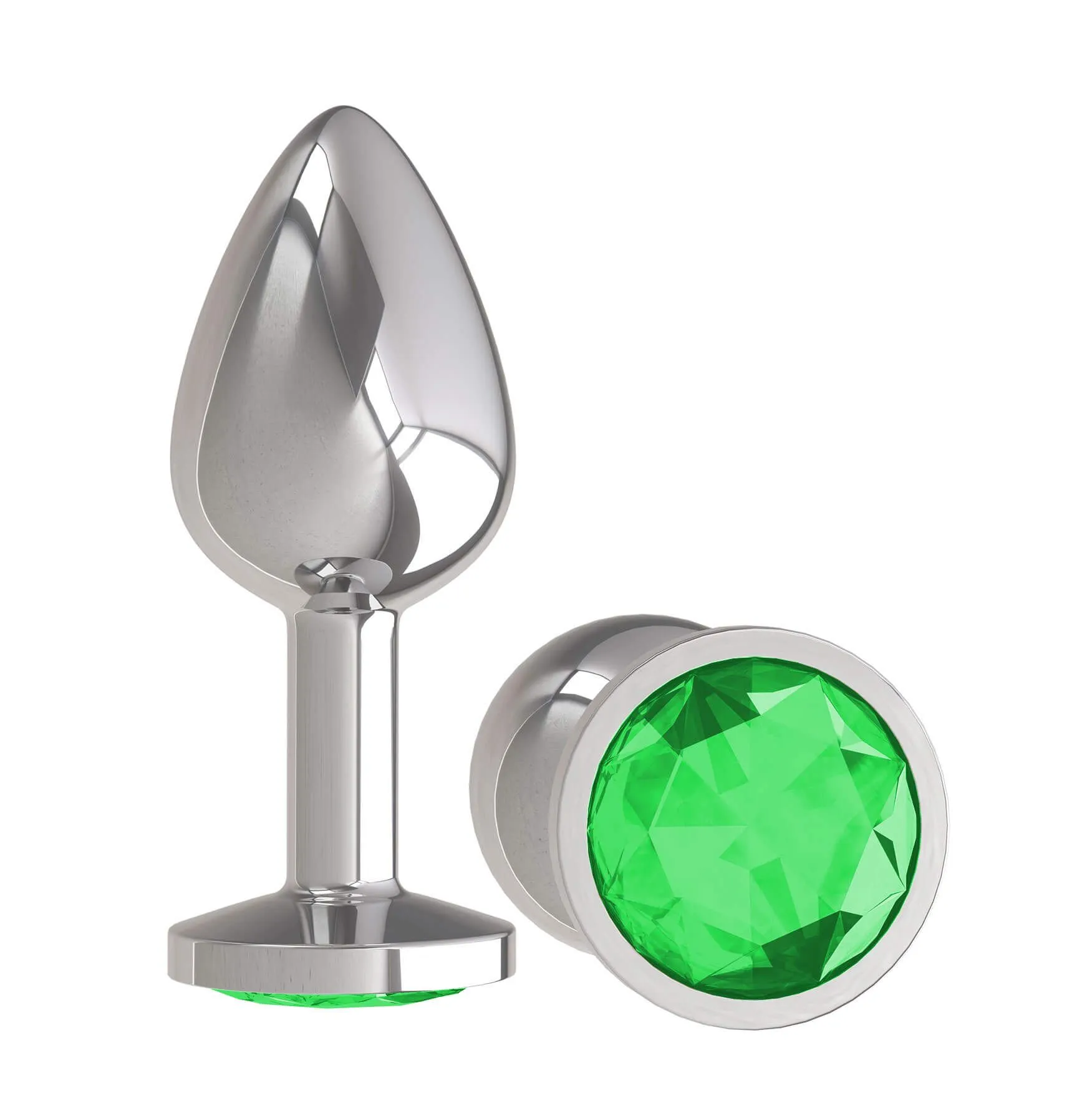 —Анальная пробка Dжага Dжага Silver с зеленым кристаллом