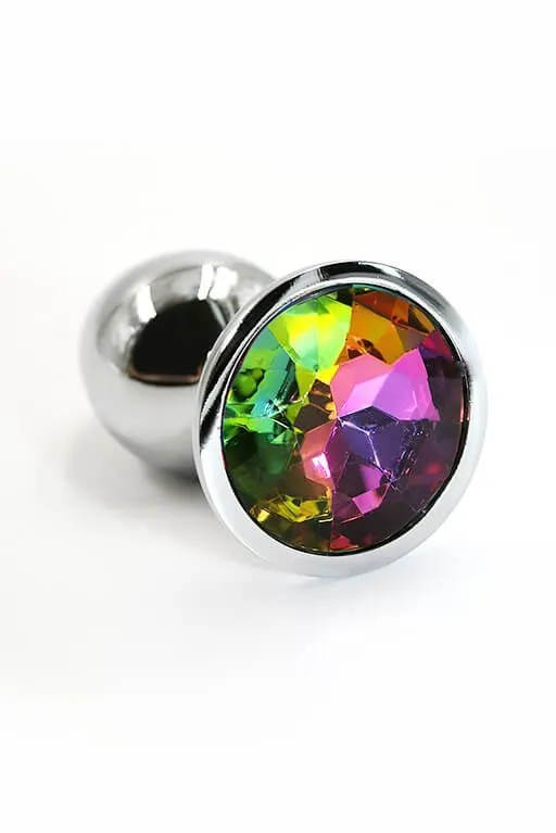 —Анальная пробка Kanikule серебрянная с радужным кристаллом, Small