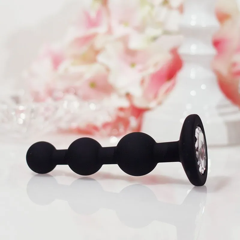 Анальная ёлочка с кристаллом Silicone Beaded Diamond - Black