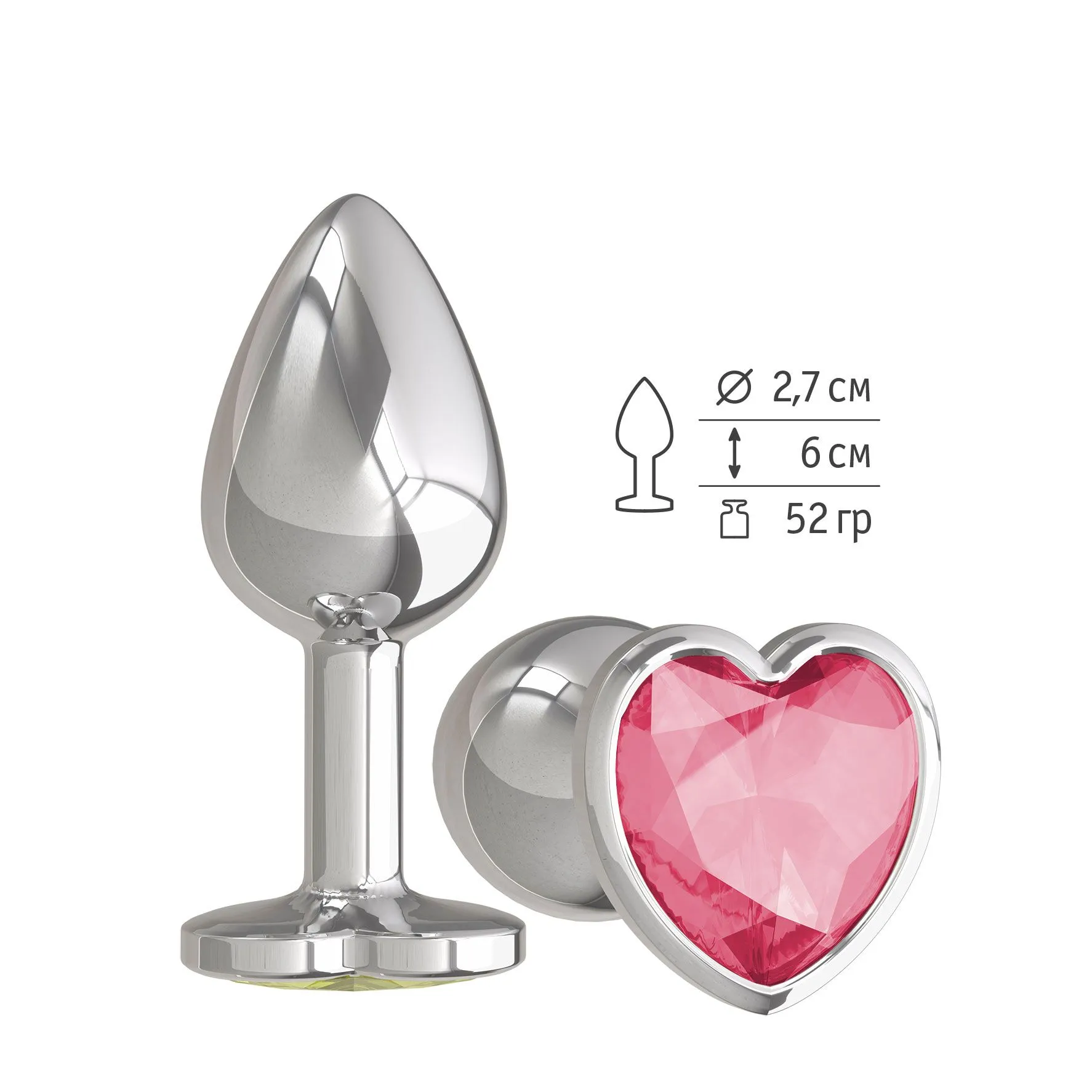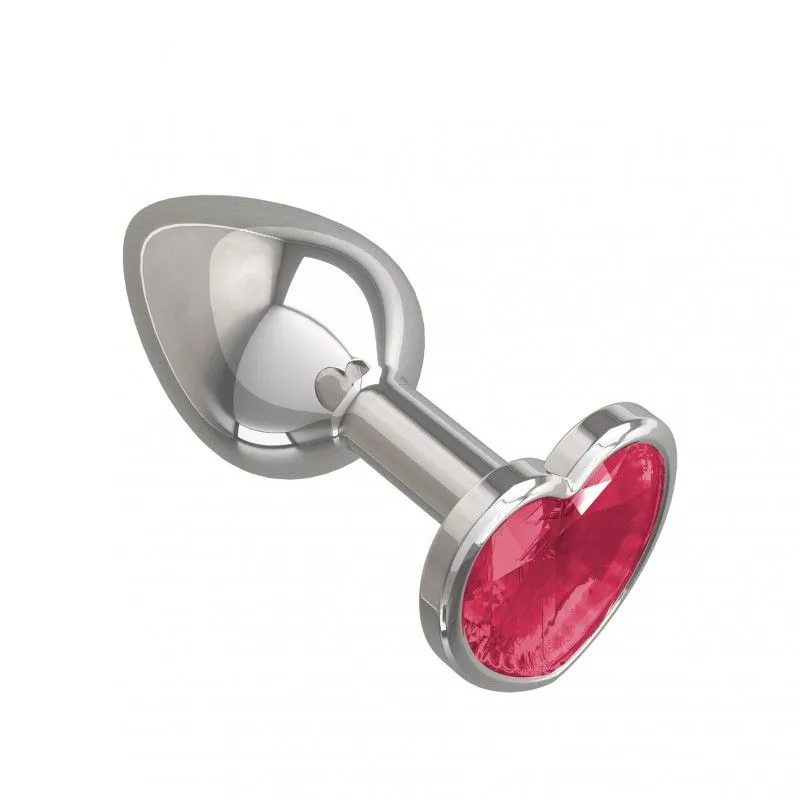—Втулка анальная Silver с малиновым кристаллом сердце