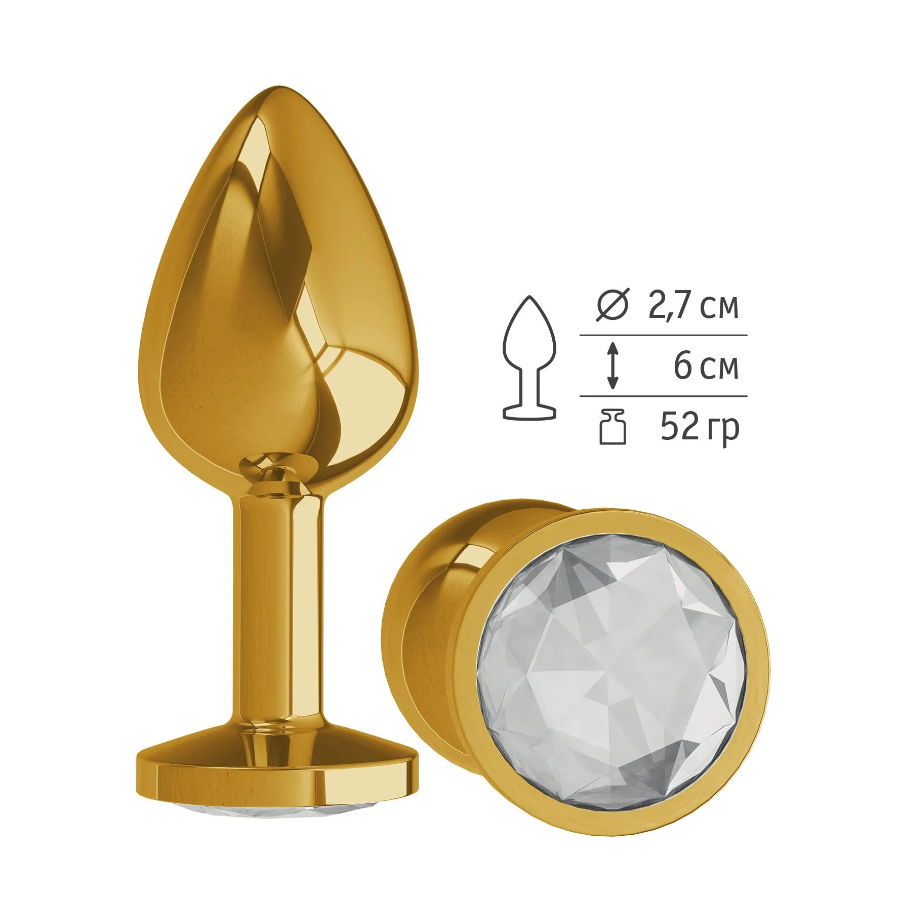 —Анальная втулка Gold малая с прозрачным кристаллом