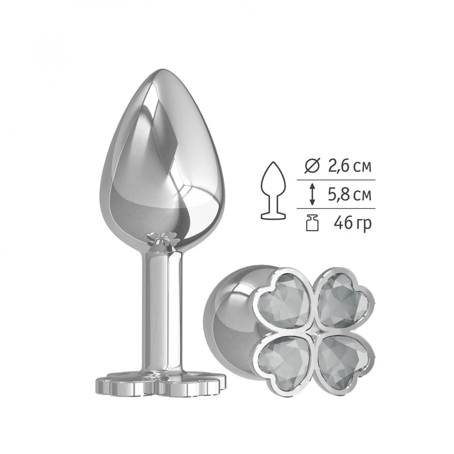 Анальная втулка Silver с прозрачным кристаллом "Клевер"
