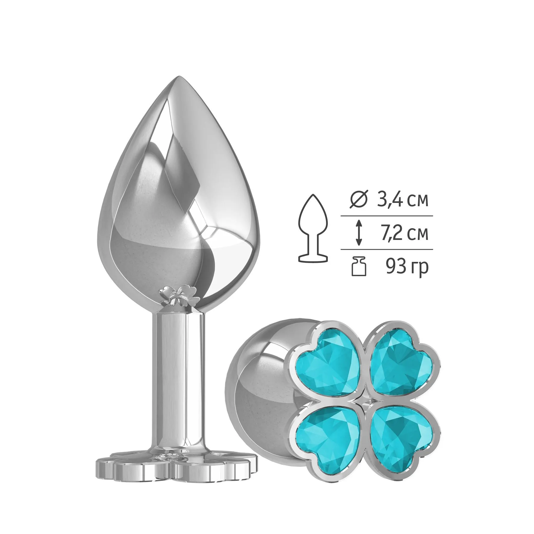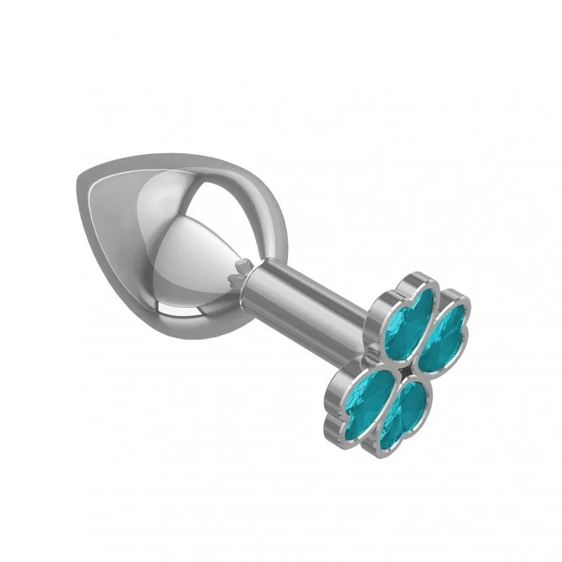 Анальная втулка Silver средняя c голубым кристаллом "Клевер"