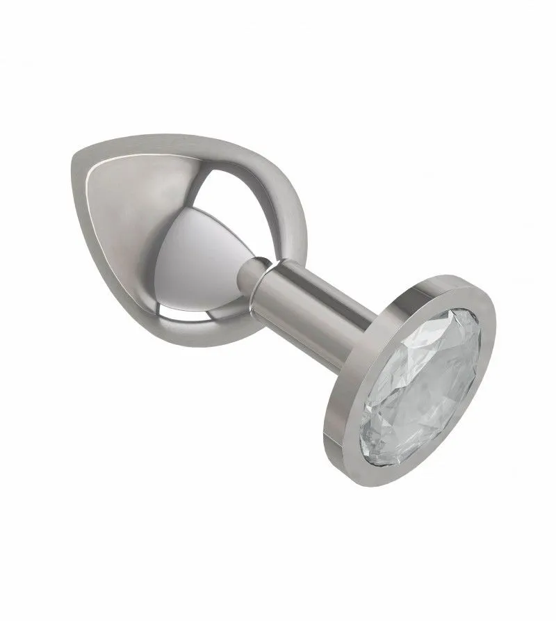 —Анальная втулка Silver средняя c прозрачным кристаллом