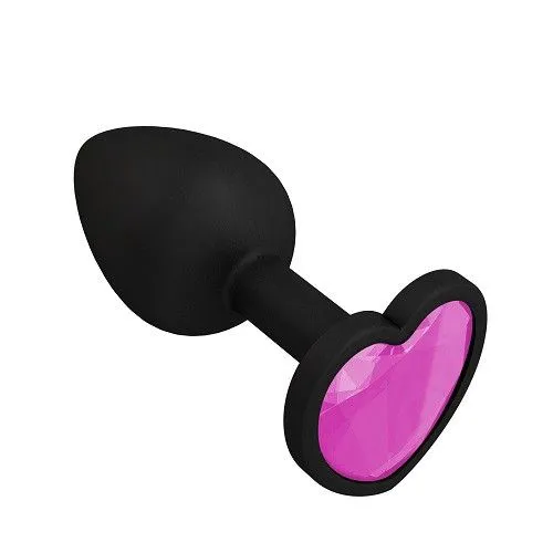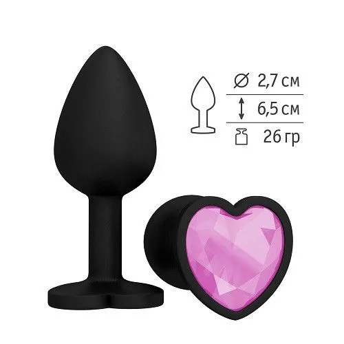 —Пробка силиконовая черная с розовым кристаллом сердце