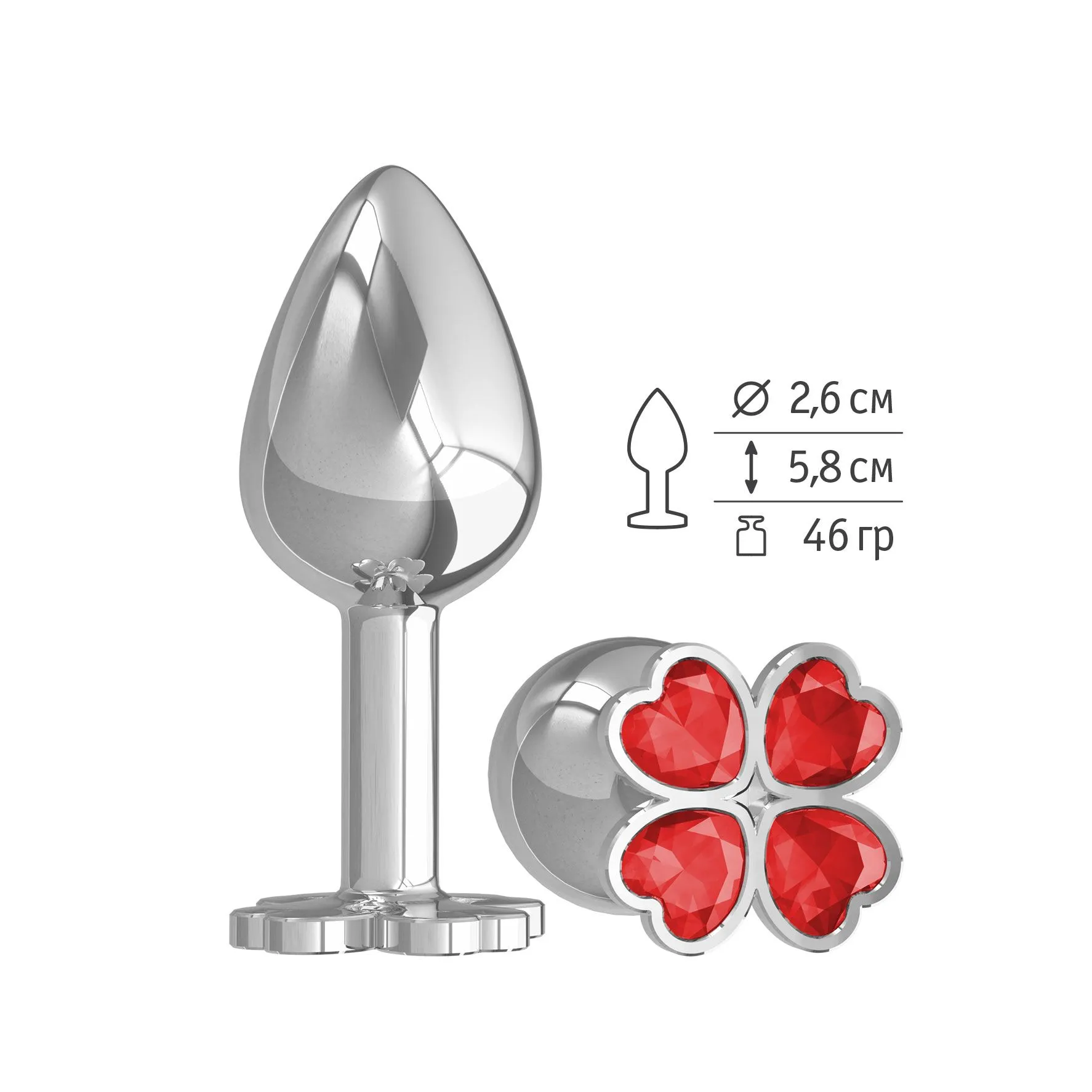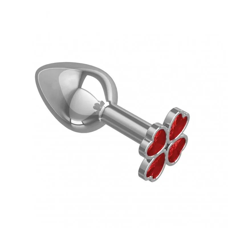 —Анальная втулка Silver с красным кристаллом "Клевер"