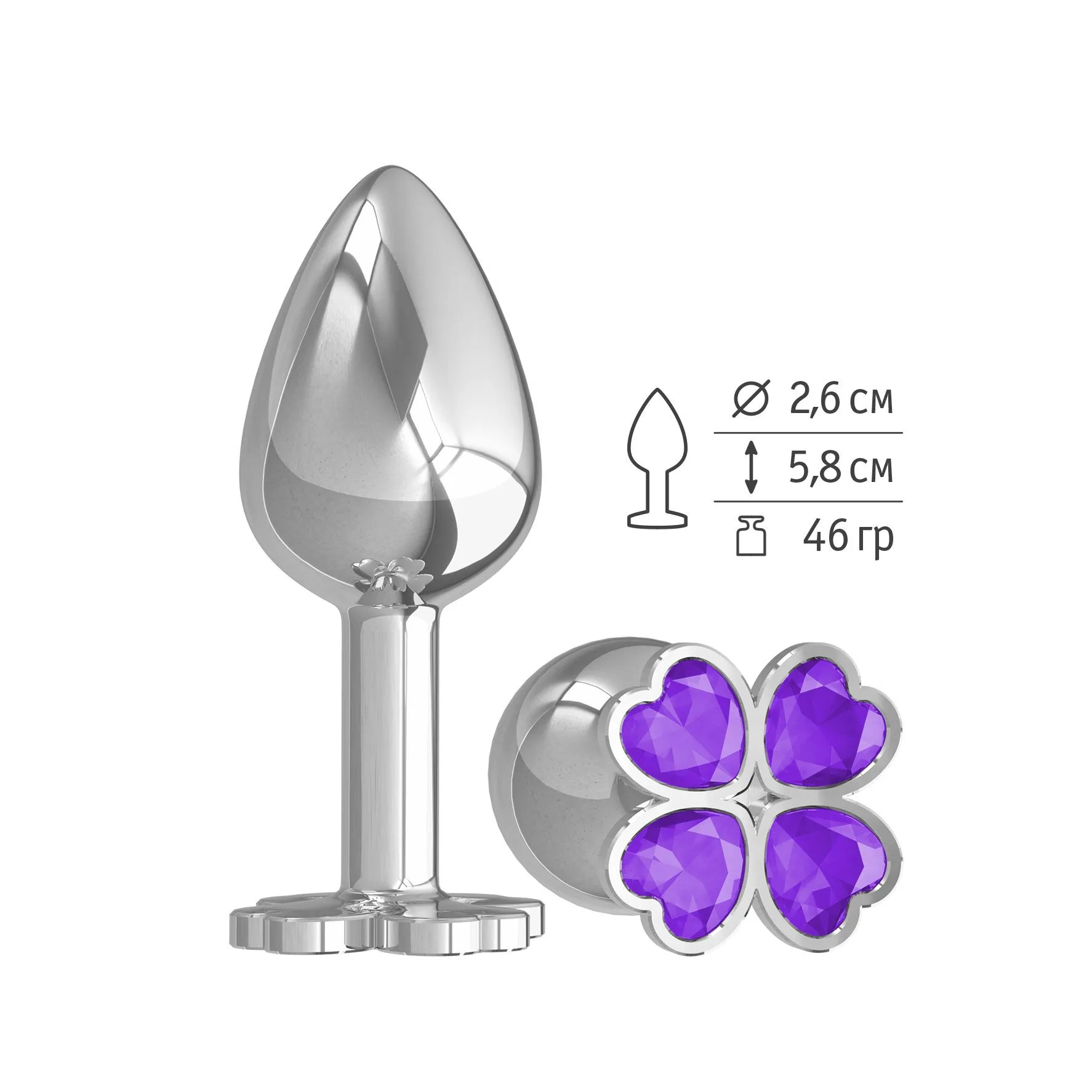 Анальная втулка Silver с фиолетовым кристаллом "Клевер"