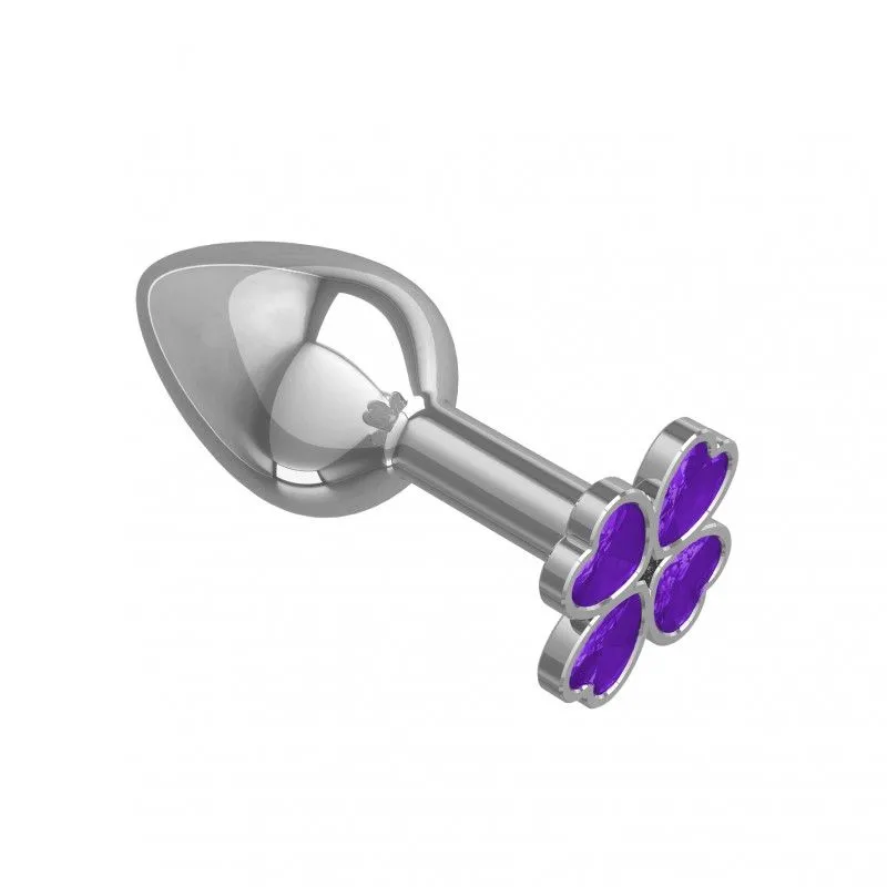 —Анальная втулка Silver с фиолетовым кристаллом "Клевер"
