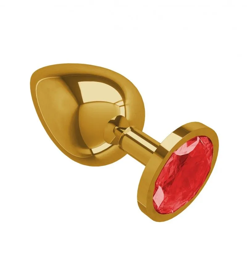 —Анальная втулка Gold большая с красным кристаллом