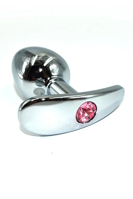 —Серебряная анальная пробка для ношения с нежно-розовым кристаллом Small