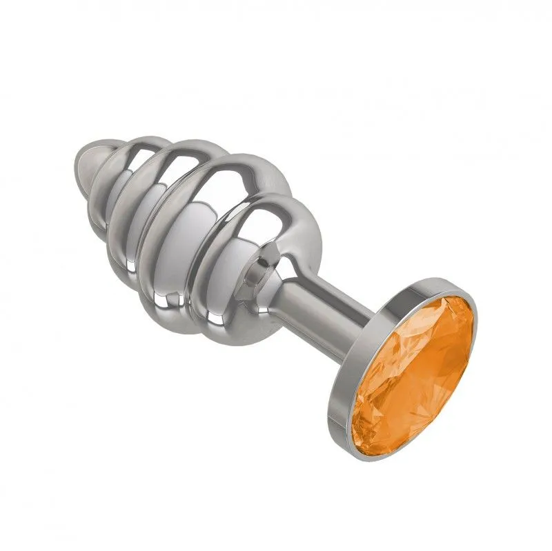Анальная втулка Silver Spiral с оранжевым кристаллом
