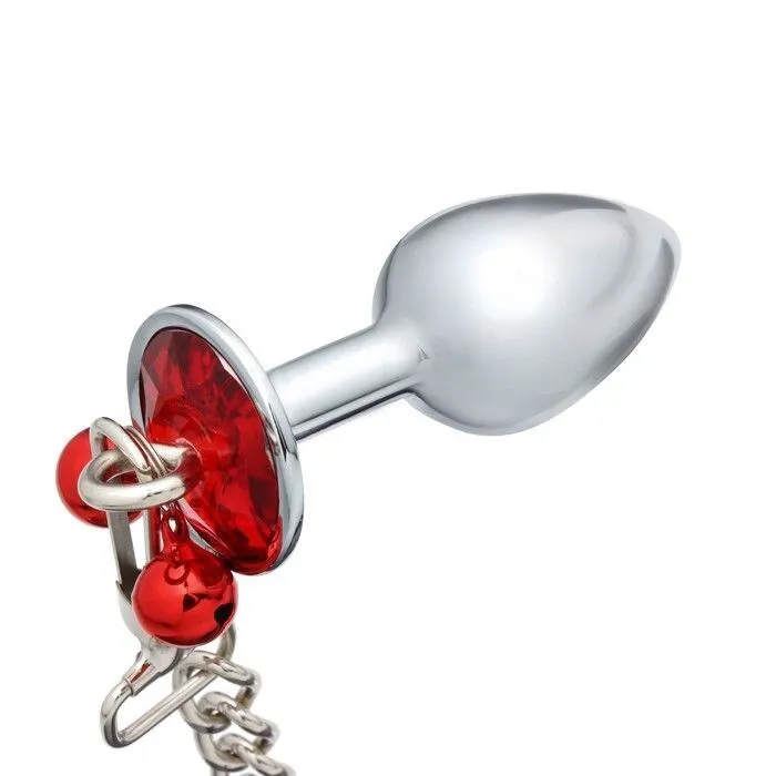 Анальная пробка из медицинской стали с колокольчиками и цепью, украшена алым кристаллом. Небольшой размер поможет постепенно растянуть и подготовить мышцу к анальному сексу. Колокольчики мягко звенят при движении, увлекая вас и вашего партнёра в мир сексуальных фантазий. В комплекте съёмный поводок для лёгких БДСМ игр.