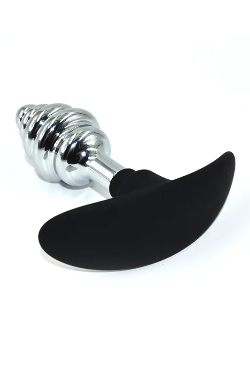 Литая анальная пробка имеет конусообразную ребристую форму и гладкую фактуру шлифованного металла. Легкий и прочный алюминиевый сплав гарантирует долговечность и гигиеничность, а также абсолютную безопасность даже при постоянном ношении. Гладкая и мягкая силиконовая подставка в форме треугольника не даст пробке выпасть или, наоборот, провалиться внутрь прямой кишки и делает ее идеальной для ношения.