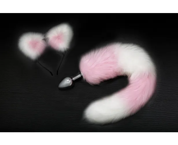 Анальная пробка с хвостиком и ушками, розовые