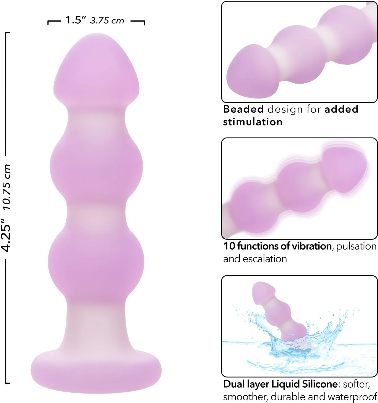 Погрузитесь в мир удовольствий с анальной пробкой Beaded, новым секретным оружием в спальне. Этот интенсивный вибрирующий девайс создан для того, чтобы вызывать восторг своим уникальным дизайном с бусинами, который обещает дополнительный уровень стимуляции. Каждая бусина добавляет восхитительное ощущение, делая каждое движение открытием более интенсивного удовольствия. Эта элегантная анальная пробка идеально подходит для тех, кто жаждет дополнительной текстуры в своей игре.