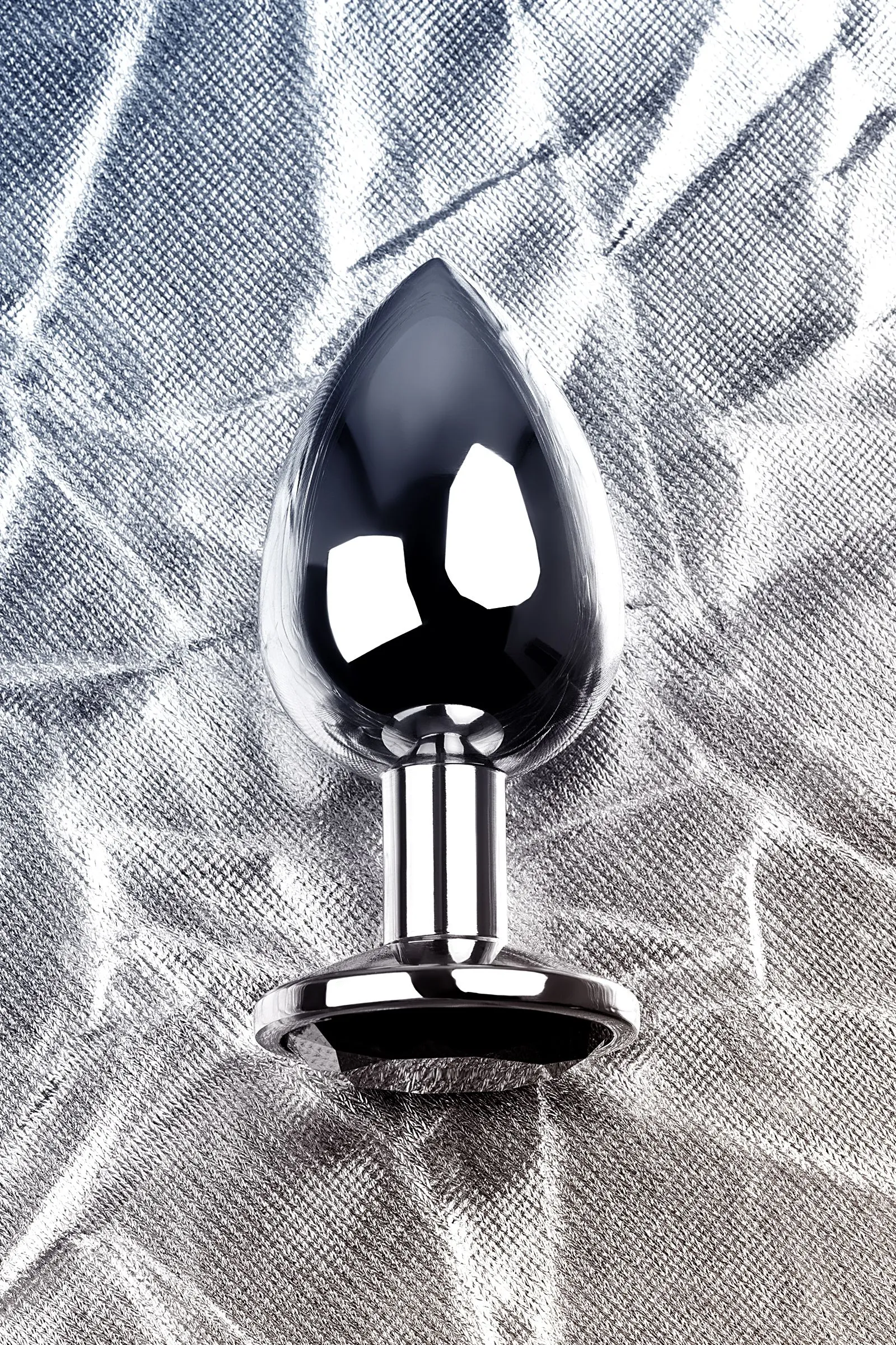 Анальная втулка Metal by TOYFA, металл, серебряная, с чёрным кристаллом