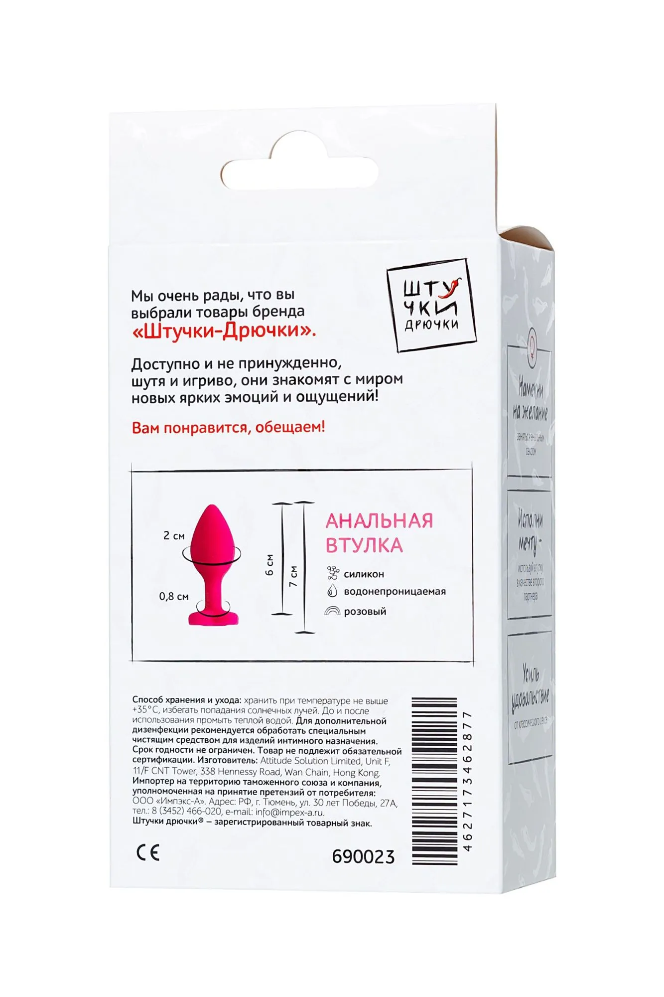 Силиконовая втулка со стразом «Штучки-Дрючки» превращает подготовку к анальному сексу в возбуждающую игру: Каплевидный кончик и эргономичная форма игрушки делают введение безболезненным и приятным даже для новичков. Небольшой диаметр втулки деликатно знакомит с новыми ощущениями и позволяет партнеру получить больше удовольствия во время вагинального проникновения. Страз в ограничителе распаляет фантазию мужчины во время прелюдии и подогревает эмоции во время интимной близости. Пикантная прелюдия, игры соло или в паре, реализация фантазий о двойном проникновении — с анальной втулкой «Штучки-Дрючки» каждый эксперимент будет удачным. Диаметр — 2 см, окружность — 6 см