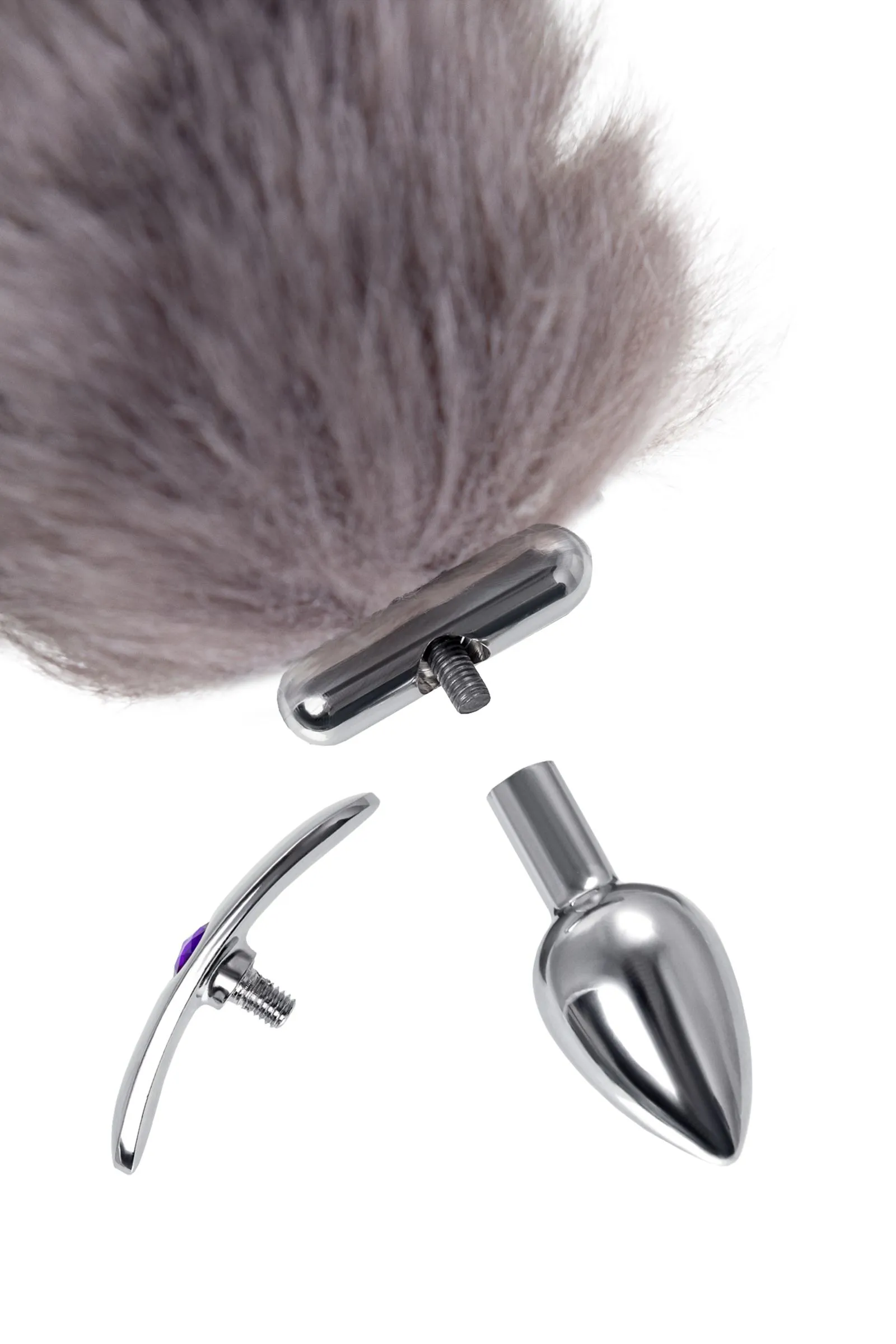 Анальная втулка с хвостом и ушки Metal by Toyfa, металл, серебристая, 44,4 см