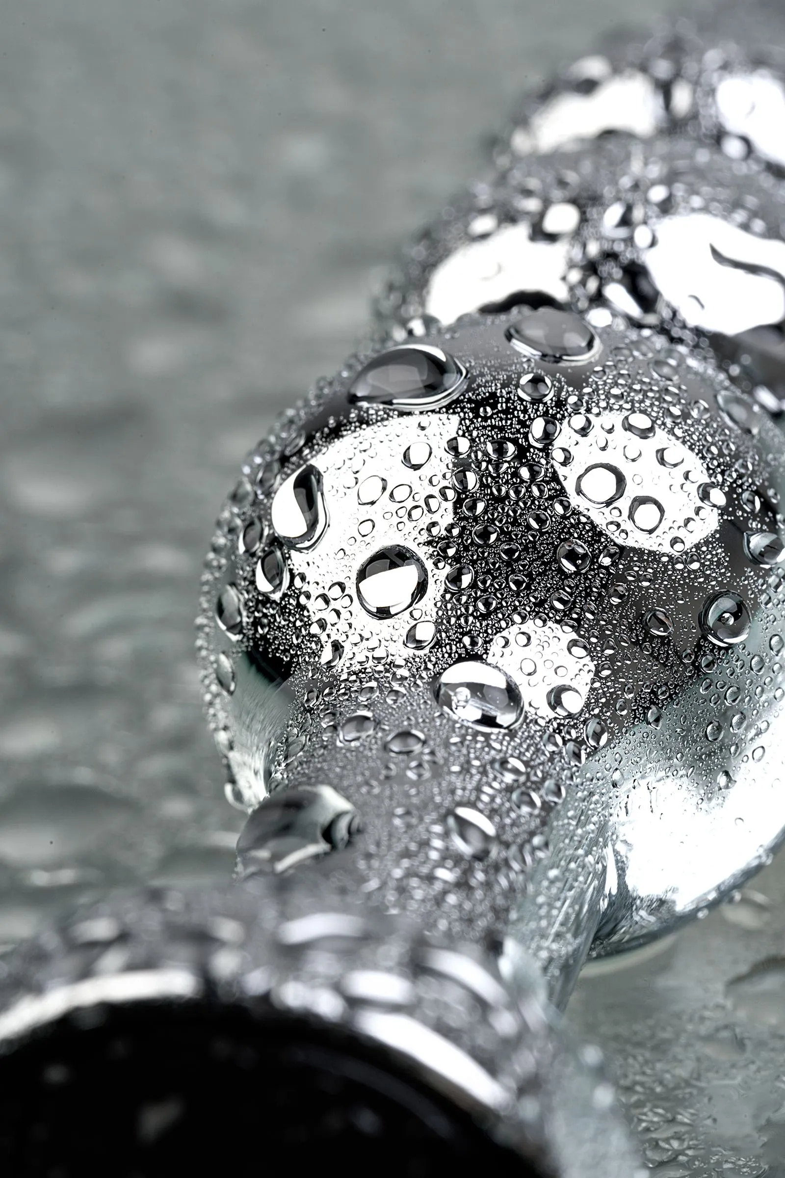 Серебристая анальная втулка оригинальной формы со стразом цвета турмалин. Удобный для ввода маленький носик плавно переходит в два шара. Еще одна особенность этой игрушки - удлиненное расстояние до стоппера.