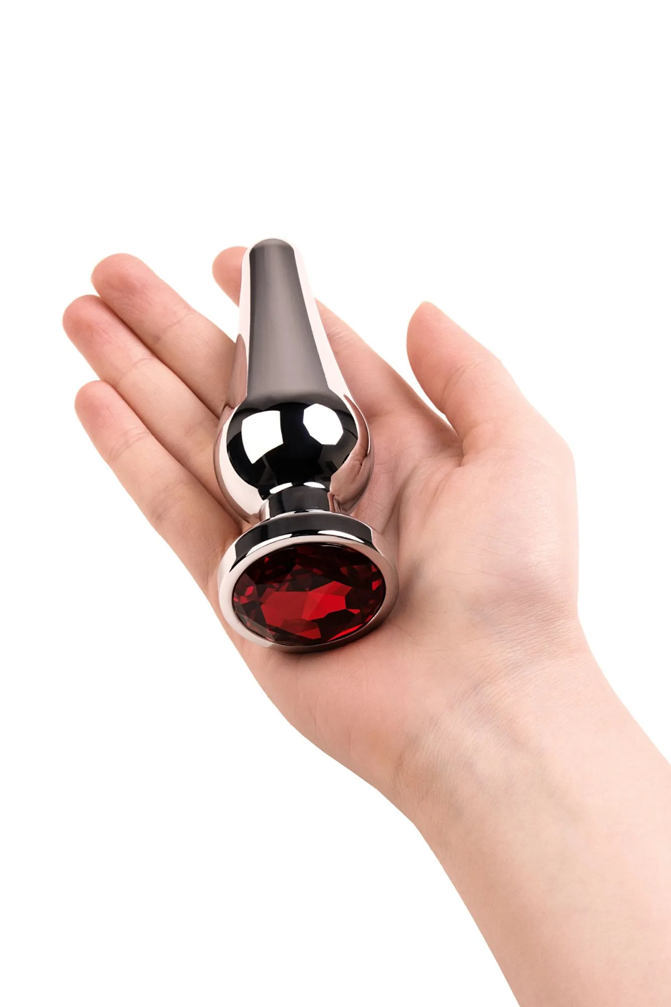 Серебристая втулка в виде наконечника стрелы со стразом цвета рубин. Идеальная форма для ввода и удерживания внутри для опытных пользователей.