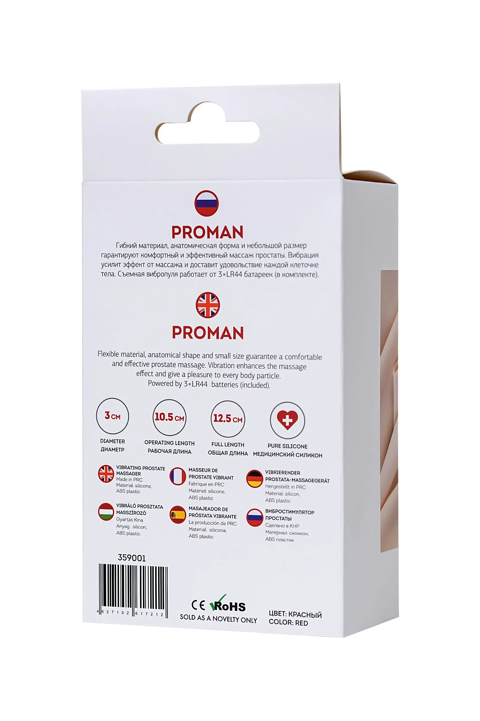 Proman Гибкий материал, анатомическая форма и небольшой размер гарантируют комфортный и эффективный массаж простаты. Вибрация усилит эффект от массажа и доставит удовольствие каждой клеточке тела. Съемная вибропуля работает от 3×LR44 батареек (в комплекте).