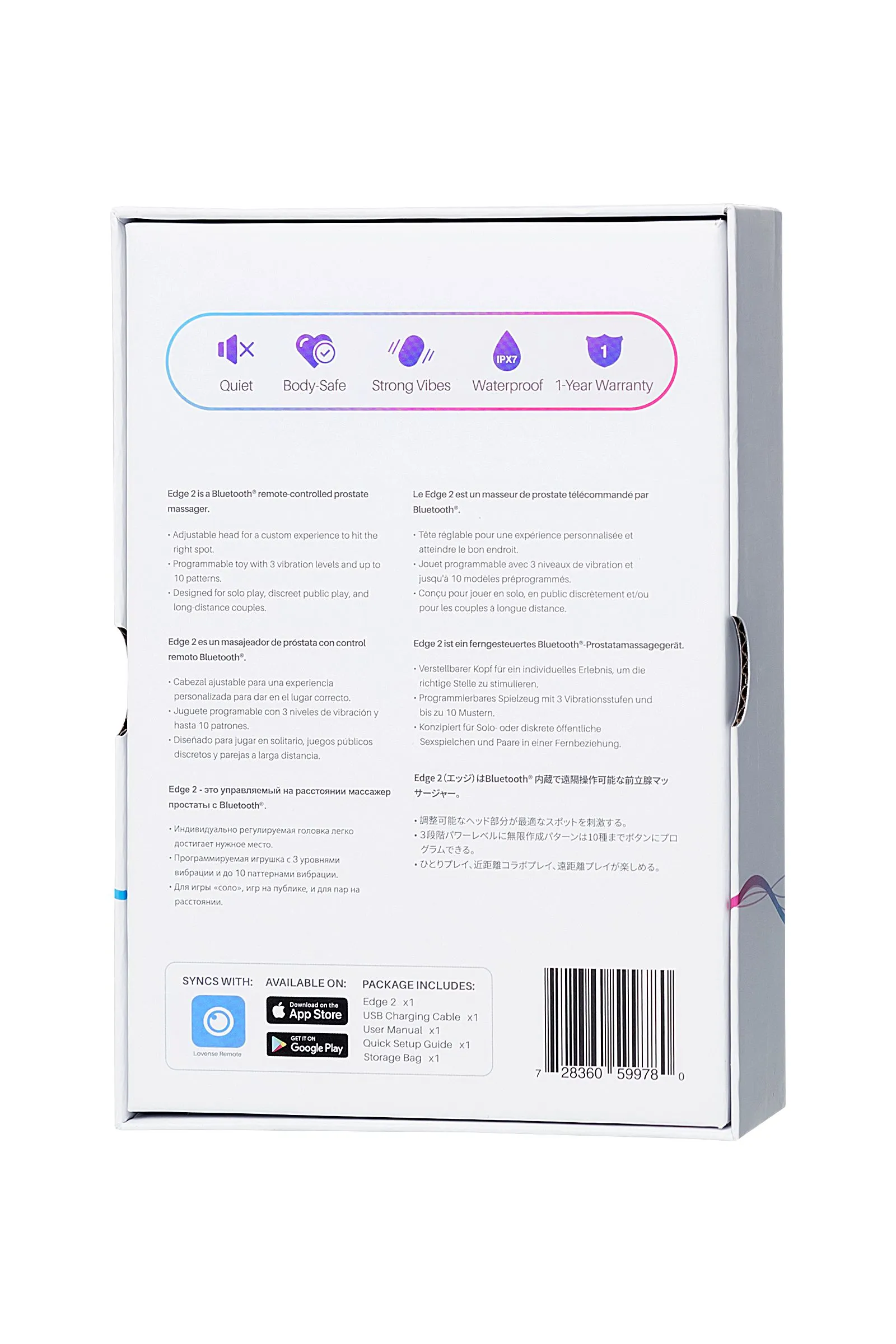 LOVENSE Edge 2 - ваш идеальный партнер для исследования новых границ удовольствия. Неотразимый дизайн, мощные вибрации и передовые функции делают его незаменимым аксессуаром для вашей коллекции. Получайте опыт удовольствия на новом уровне уже сегодня!