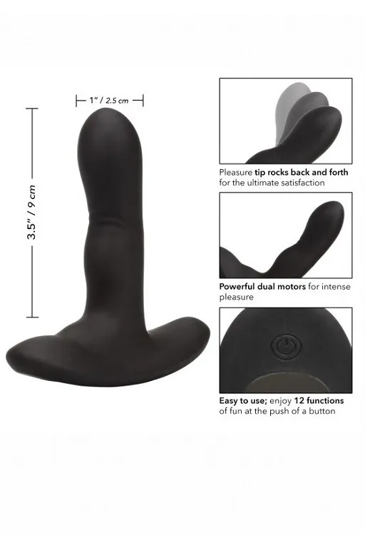 Вибромассажер простаты Wireless Rocking Probe – инновационное бесшовное специализированное устройство идеальной контурной анатомической формы с движением "вперед-назад". Он изготовлен из гладкого литого гигиеничного силикона высшего качества, обеспечивающего удивительно приятные и гарнировано безопасные тактильные ощущения. Прибор разработан с учетом строения мочеполовой системы у мужчин. Массажер оснащен 12 функциями вибрации и уникальной функцией "манящее движение"! Два мотора обеспечивают интенсивность и силу воздействия.