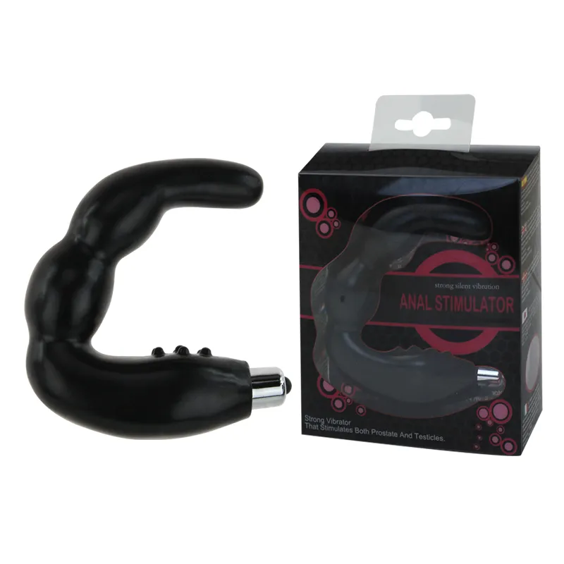 Стимулятор простаты с вибрацией, выполненный из мягкого TPR черного цвета. Кнопка включения и выключения находится в основании игрушки. Для дополнительной стимуляции промежности имеются пупырышки. Характеристики: общая длина игрушки- 13 см, рабочая длина- 10 см, максимальный диаметр- 3,5 см, минимальный диаметр- 2 см, имеет 1 режим вибрации, работает от 4-х дисковых батареек (есть в комплекте). Упаковка: картонная коробка с принтом.