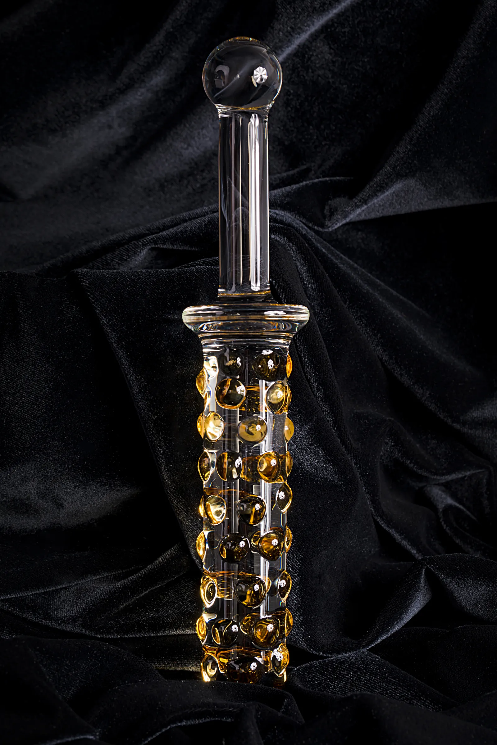 Этот стеклянный фаллос, рельефный с одной стороны и гладкий с другой, поддержит любую сексуальную фантазию и поможет сделать её по-настоящему запоминающейся. Анальная стимуляция, вагинальная, интимные игры с температурным режимом (стеклянные игрушки можно нагревать или охлаждать) — всё, чтобы удовольствие было всепоглощающим! Общая длина — 25 см. Рабочая длина — 14 и 10 см.