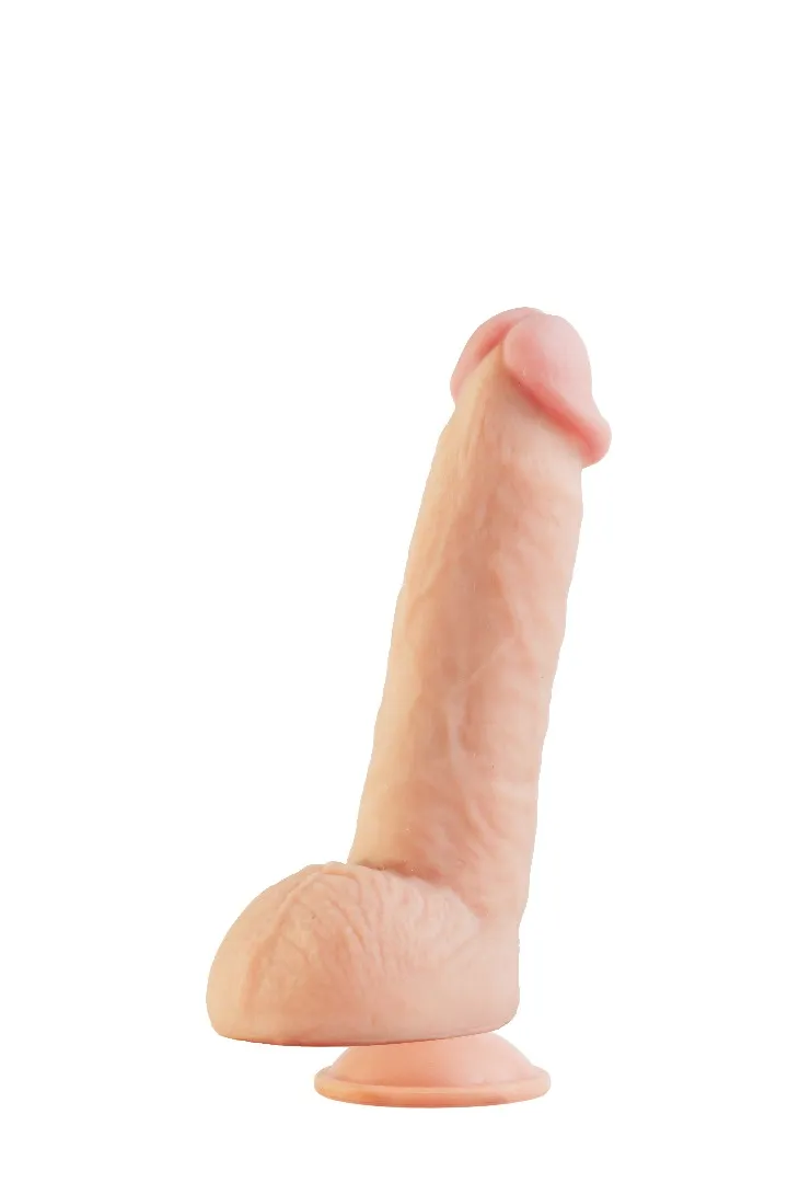 Фаллоимитатор телесного цвета. Имеет форму члена с ярко-выраженной головкой и мошонкой, рельефный, выполненный из материала неоскин, не имеет швов. Характеристика: цвет- телесный, общая длина- 23 см, рабочая длина- 17 см, максимальный диаметр- 5 см. Упаковка: прозрачная пленка.