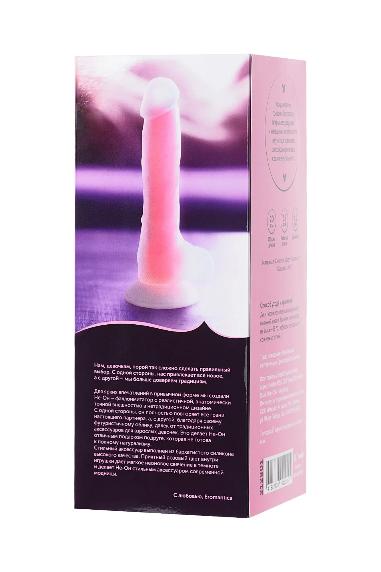 Фаллоимитатор Eromantica НЕ-ОН, светящийся в темноте, силикон, прозрачный, 20 см