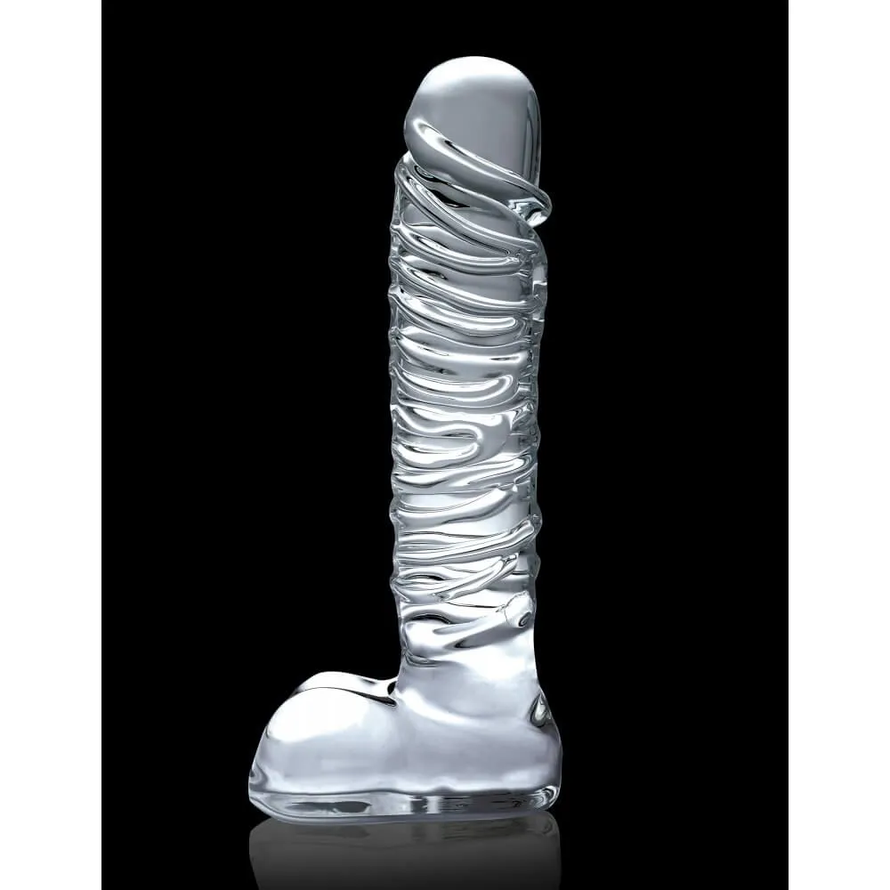 Icicles № 63 - это реалистичный фаллоимитатор из стекла, который подойдет тем, кто ищет игрушку больших размеров. Этот массивный фаллос, весящий почти 800 гр., подарит настоящее наслаждение опытным пользователям, желающим усилить свое удовольствие от массажа интимных зон. Крупная головка члена и ствол с рельефом из ярко выраженных венок добавят дополнительные ощущения во время стимуляции. Мошонка может служить удобной ручкой, а также и предохранителем в случае анального стимулирования. Для получения новых впечатлений от игрушки охладите или нагрейте ее в воде нужной температуры.